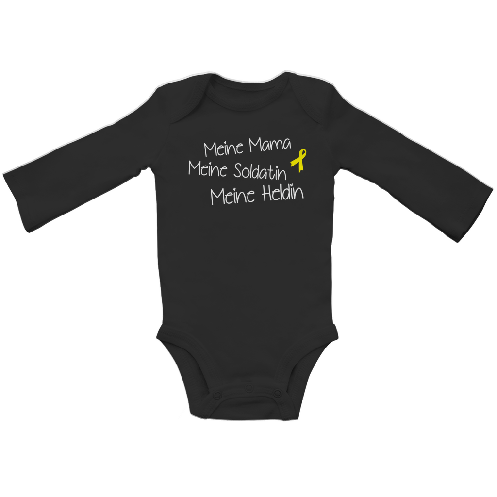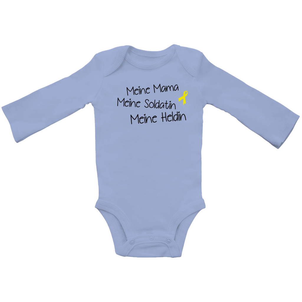 Zeige der Welt, wie stolz du auf deine Mama bist – mit unserem liebevoll gestalteten Babybody aus zertifizierter Bio-Baumwolle. Der Aufdruck „Meine Mama, meine Soldatin, meine Heldin“ macht ihn zu einem besonderen Statement für die Kleinsten.