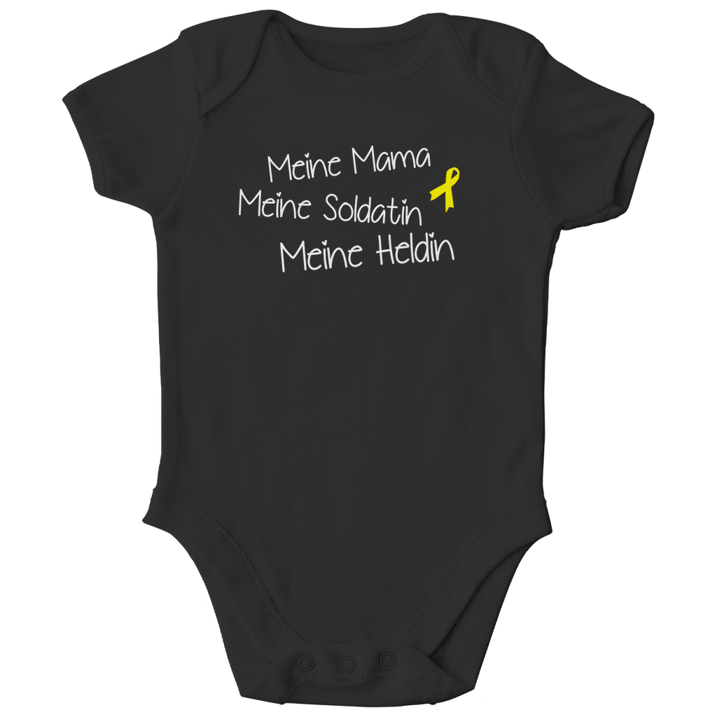 Zeige der Welt, wie stolz du auf deine Mama bist – mit unserem liebevoll gestalteten Babybody aus zertifizierter Bio-Baumwolle. Der Aufdruck „Meine Mama, meine Soldatin, meine Heldin“ macht ihn zu einem besonderen Statement für die Kleinsten.